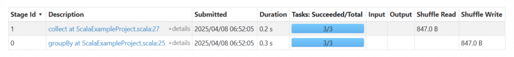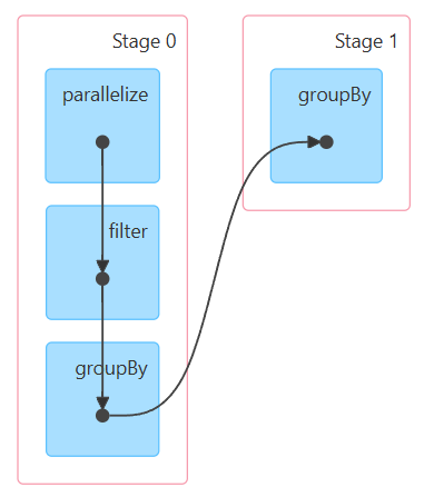 Spark’s DAGScheduler generates a DAG that clearly visualizes dependencies and stages. For our example, the DAG looks like the